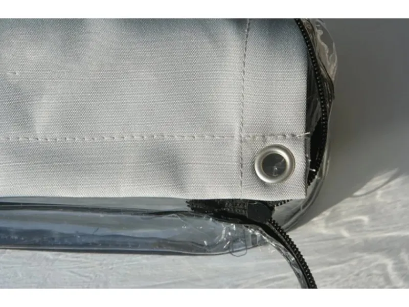 Dank der vorgefertigten Metallösen lässt sich die fertige Balkonverkleidung unkompliziert montieren. Die Ösen befinden sich an beiden Längsseiten, haben einen Innendurchmesser von Ø 10 mm und sind alle 24,5 cm gesetzt. Mit Hilfe der zwei 5 m langen Kordeln in passendem Silbergrau (im Lieferumfang enthalten) lässt sich die Balkonverkleidung einfach am Geländer befestigen.