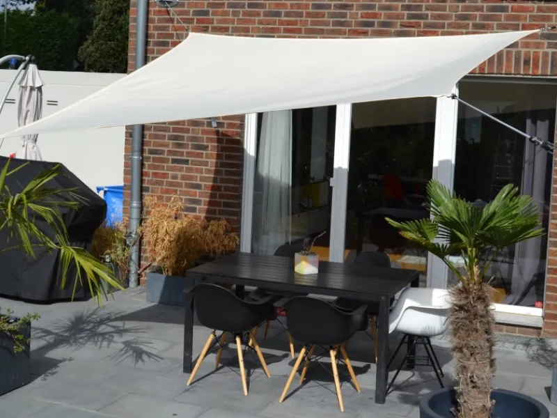 Das Segel zum Winter hin und bei Unwetter- und Sturmwarnungen abnehmen.