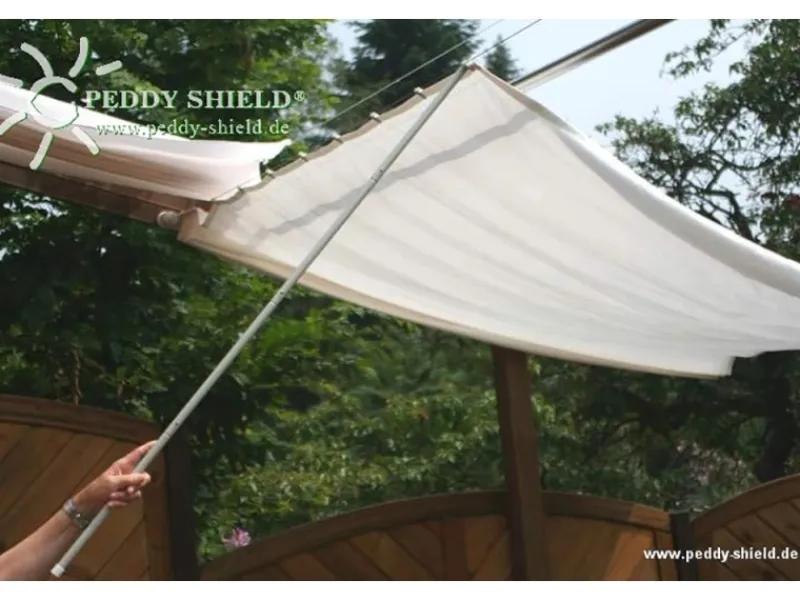 Der Floracord Schiebestock in der Farbe Hellgrau ist besonders dort zu verwenden, wo das Sonnensegel in Seilspanntechnik so hoch hängt, dass es sich nicht mehr von Hand verschieben lässt. Der Schiebestock besteht aus 4 steckbaren Rohrstücken und besitzt eine Gesamtlänge von 127 cm. Der Durchmesser beträgt 1,5 cm und hat ein Gewicht von 160 g.