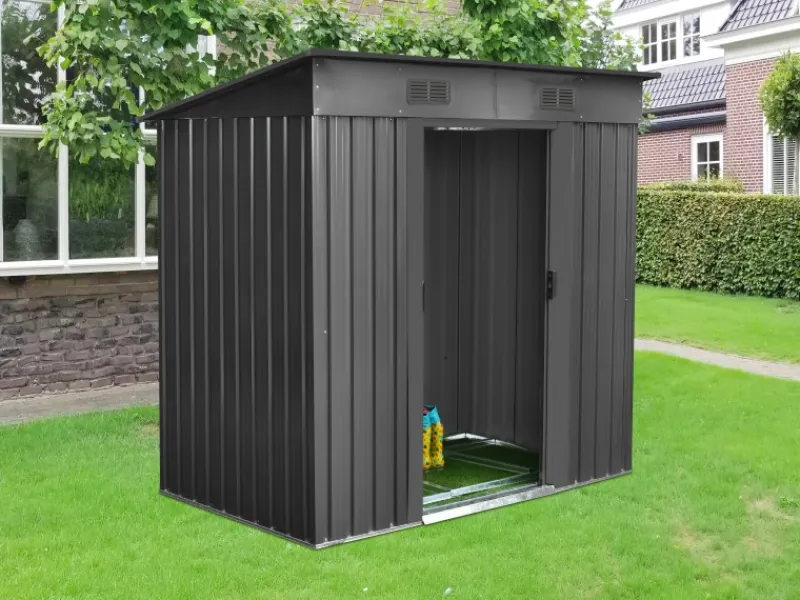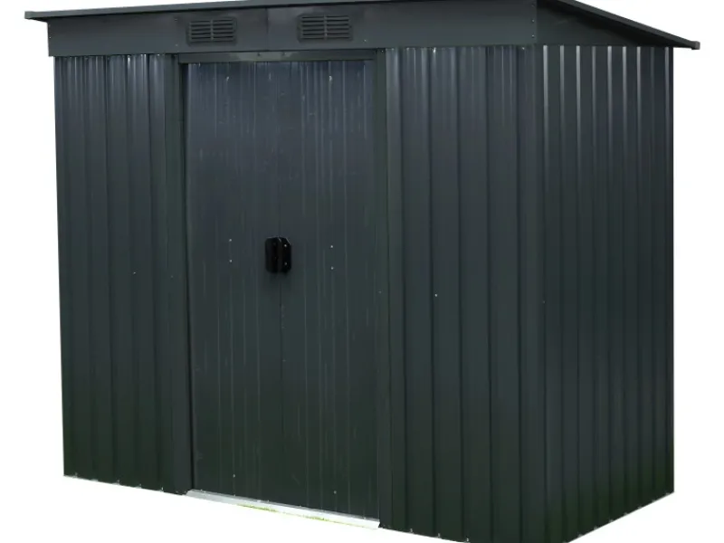 Das Metall-Gartenhaus überzeugt durch seine ansprechende Optik und ist dabei in schlichtem Anthrazit gehalten.