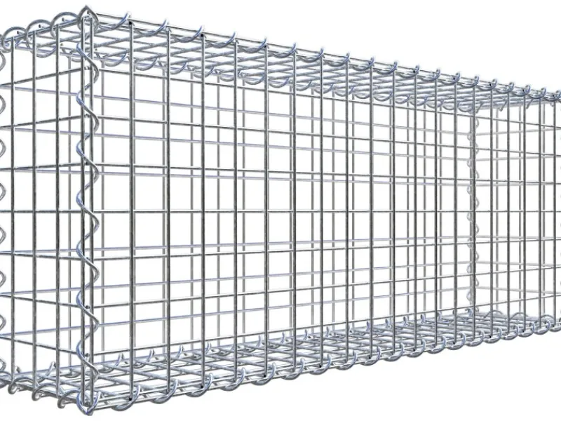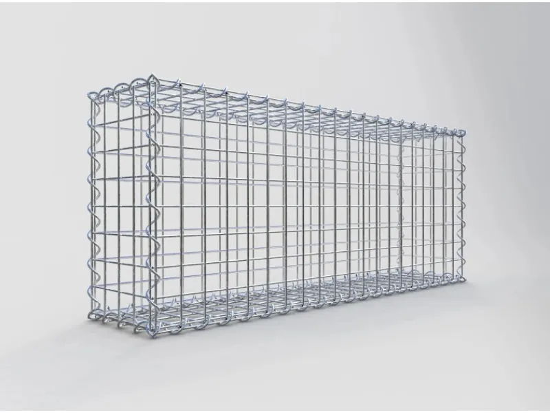 Man fügt die Seiten- und das Bodenteil mit den enthaltenen Spiralverbindern zusammen und befüllt den Korb lagenweise mit den gewünschten Steinen. Hierbei werden die Distanzhalter, gleichmäßig verteilt über den ganzen Gitterkorb, angebracht um das Ausbeulen unter Fülllast zu verhindern.