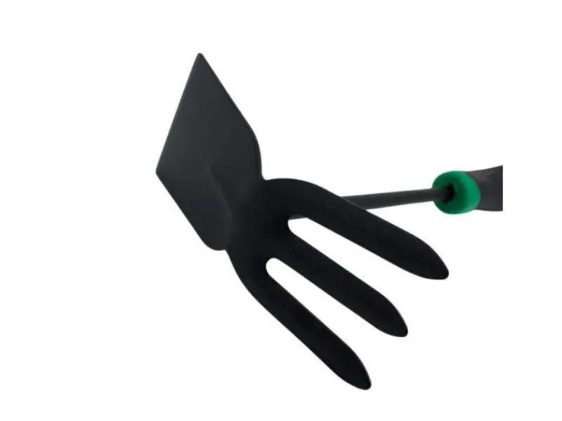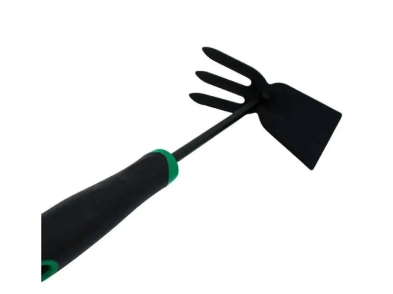 Die Doppelhacke aus Stahl hat eine Gesamtlänge von 32 cm. Der Griff lässt sich durch die eingearbeitete Daumenmulde gut greifen. Außerdem hat der Griff hat ein Loch, um die Doppelhacke ordentlich zu verstauen. Die Doppelhacke eignet sich zum Unkraut jäten und zum Lockern und Lüften der Erde. Durch die schmale Arbeitsbreite eignet sie sich auch für enge Stellen im Beet.
