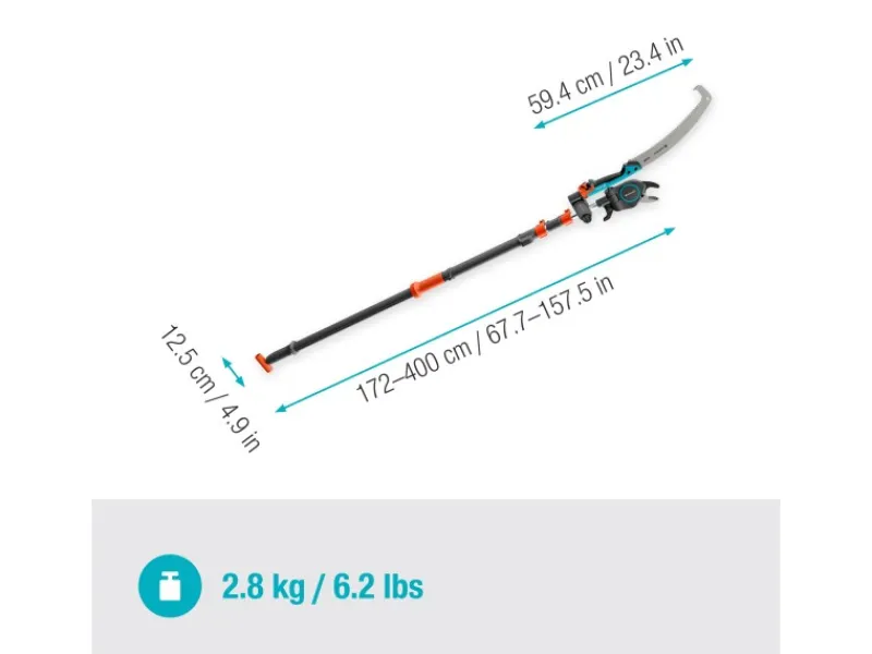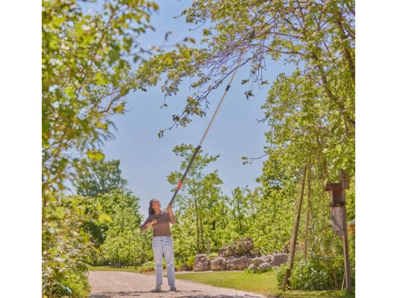 Verstellbar von 175 cm bis 400 cm Länge, abwinkelbarer Kopf für komfortables Sägen