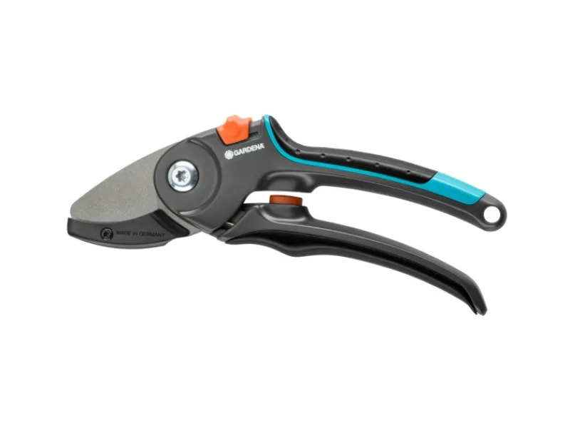 Das antihaftbeschichtete und präzisionsgeschliffene Obermesser trifft beim Schneiden auf eine ebene Kunststofffläche (den Amboss). Durch die optimale Kraftübertragung eignet sich die Amboss-Gartenschere besonders gut für den Schnitt von holzigen Zweigen und Ästen.