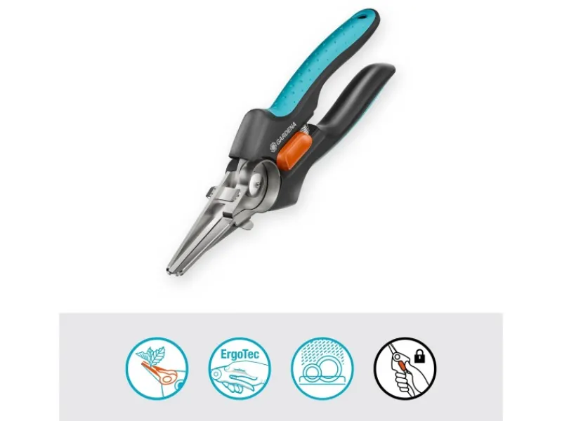 Die GripCut verfügt über hochwertige, langlebige Klingen aus rostfreiem Edelstahl. Mit ihren langen, scharfen Messern ist ein sauberes und präzises Schneiden bis zur Spitze garantiert. Dank der ergonomischen ErgoTec-Griffe mit Weichkomponenten liegt die Schere angenehm und rutschfest in der Hand. Die Einhandverriegelung ermöglicht eine schnelle Entriegelung oder sicheres Verschließen der Schere.
