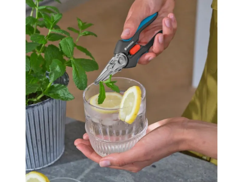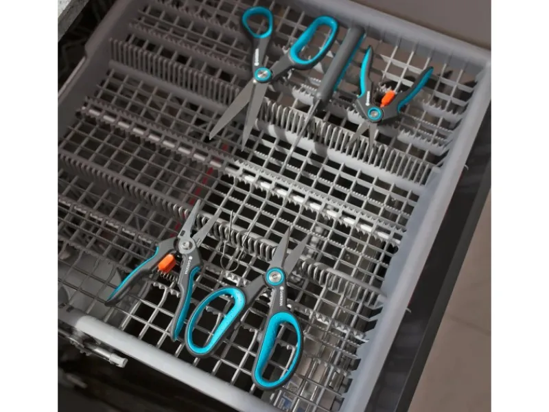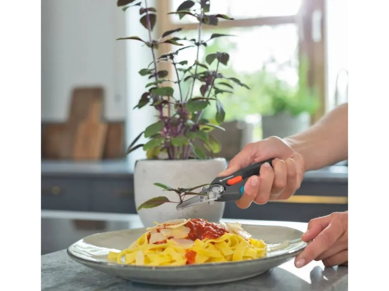 Die lebensmittelechten Klingen übertragen weder Gerüche noch Geschmack. Für eine besonders einfache Reinigung ist die GripCut spülmaschinengeeignet. Nach dem leichten Demontieren des Halters wird er zusammen mit der Ernteschere in die Spülmaschine gelegt.