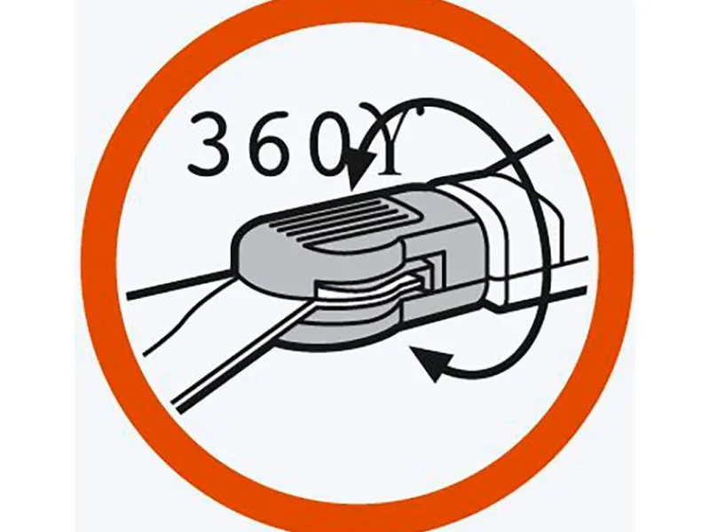 Drehbare Klinge ermöglicht die Nutzung für Links- und Rechtshänder
