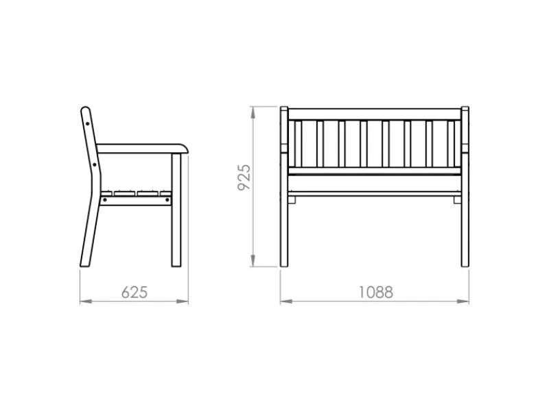 Die Axi Gartenbank Charlotte lässt sich unkompliziert montieren und ist mit einer maximalen Belastung von 270 kg äußerst stabil. Mit den Abmessungen (LxBxH) von 110 x 63 x 97 cm bietet die Bank ausreichend Platz für zwei Personen, um entspannte Stunden im Freien zu verbringen.