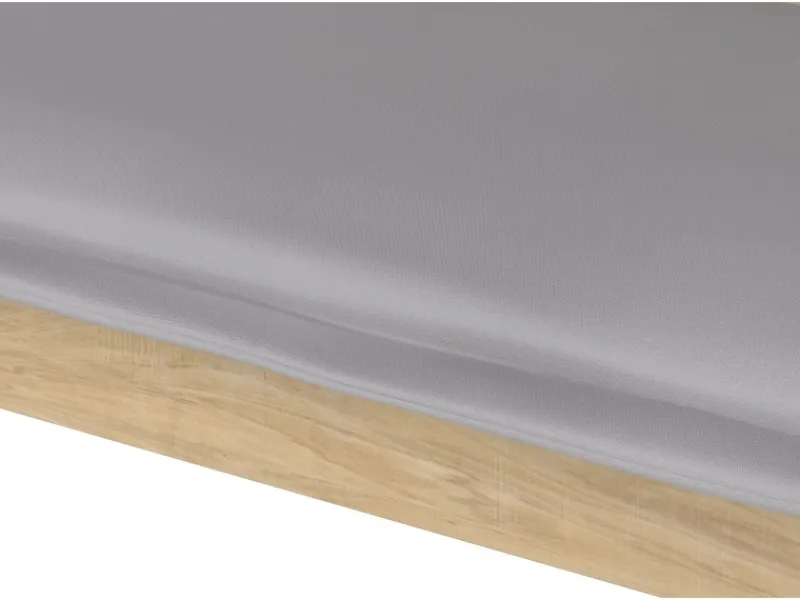 Hellgraues Polyester-Sitzkissen und Armlehnen sorgen für Komfort
