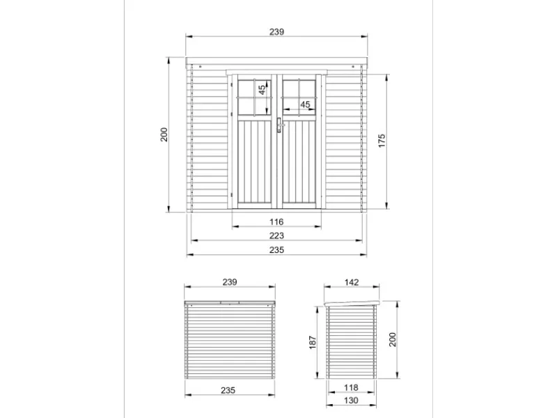 Sockelmaß Haus ohne Außenfläche B x T: 235 x 118 cm