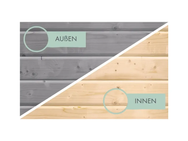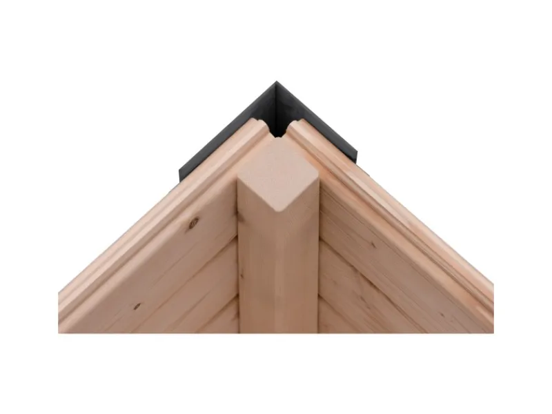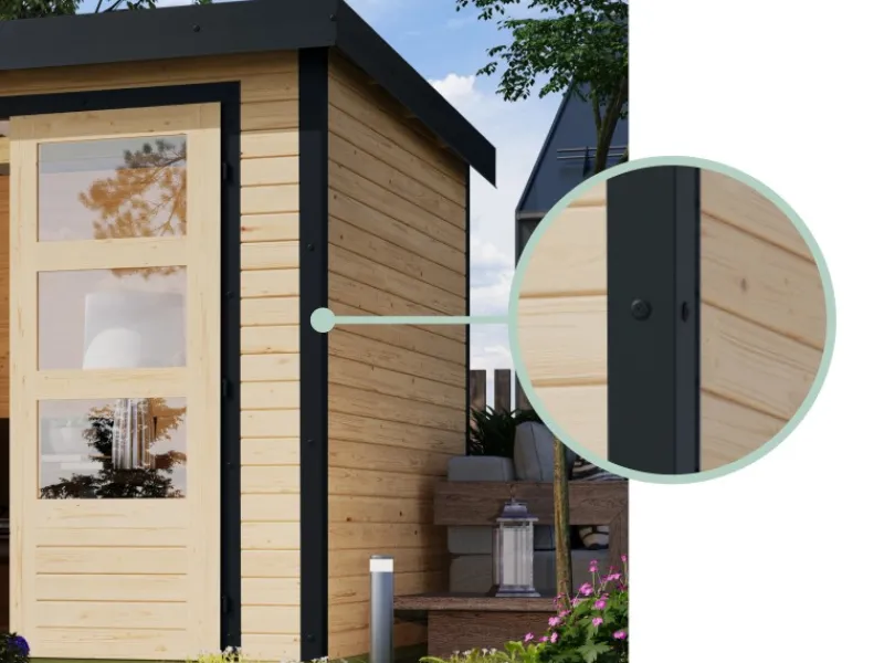 Hochwertige Materialien wie nordische Fichte, Stahlecken und Trapezblechdach