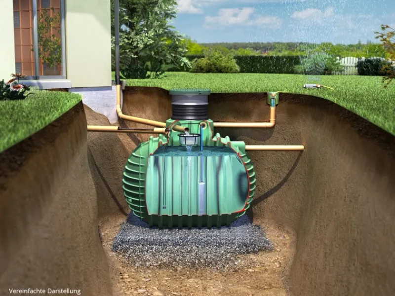 Lieferumfang: Erdtank mit 4 x Anschlussbohrungen inkl. Lippendichtung DN 100, Teleskop-Domschacht Columbus (teleskopierbar/kürzbar von 220 bis 700 mm, Ø 620 mm), Kunststoffabdeckung doppelwandig mit Kindersicherung (begehbar bis 150 kg / Farbe rasengrün), Filterkorb mit verstellbarer Traverse, Digitale Füllstandsanzeige, Edelstahl Tauchdruckpumpe mit Start-Stopp-Automatik (Motorleistung 0,85 kW, max. Förderhöhe 32 m, max. Druck 3,2 bar, max. Fördermenge 5.100 l/h), Wassersteckdose extern inkl. 2-Wege-Ventil, 10 m Druckschlauch 25 mm (1“).