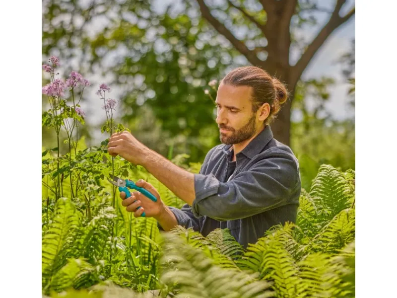 Diese Gartenschere ist handlich und tragbar, und sie bietet starke Schneidleistung in einem leichten und komfortablen Paket. Mit Gardenas vereinfachtem Griffdesign ist sie auf Benutzerkomfort und minimierte Handbelastung für ermüdungsfreies Schneiden ausgelegt. Die Griffe sind für zusätzliche Stabilität mit Glasfaser verstärkt und aus 45 % Kunststoff aus Industrieabfällen hergestellt.