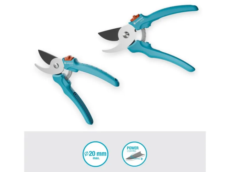 Die scharfen, präzisionsgeschliffenen Klingen haben einen Schneiddurchmesser von 20 mm und umfassen Gardenas innovatives PowerCoating für gesunde Pflanzen, einfache Reinigung und anhaltenden Schutz.