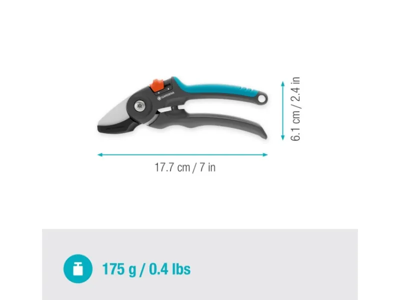 Mit Gardenas ergonomischem SoftGrip-Griffdesign ist sie auf Benutzerkomfort und minimierte Handbelastung für ermüdungsfreies Schneiden ausgelegt. Für zusätzliche Stabilität sind die Griffe mit Glasfaser verstärkt.