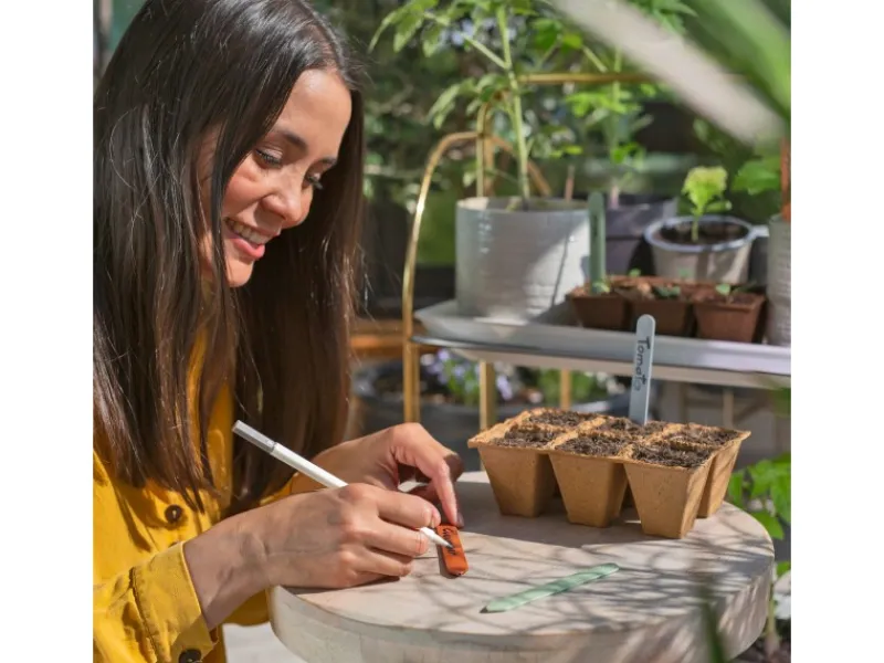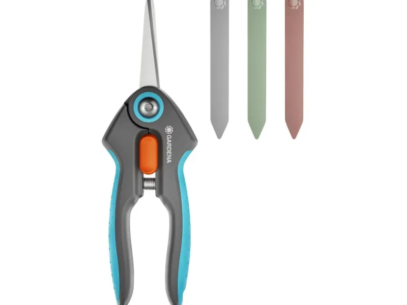 Die FreshCut liegt dank der ErgoTec-Griffe mit Weichkomponenten ergonomisch und rutschfest in der Hand. Das Set enthält außerdem drei Kräuterschildchen, die individuell gestaltet und beschriftet werden können. Sie sind eine praktische Ergänzung zur Kennzeichnung von Setzlingen, Kräutern oder Blumen.