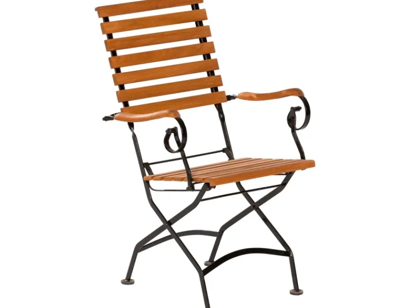 Der Gartensessel Schlossgarten ist aus einem pulverbeschichteten Flachstahl mit einer FSC®-zertifizierten Eukalyptus-Belattung gefertigt. Er verfügt über die Maße (H x B x T) von 95 cm x 58 cm x 66 cm.