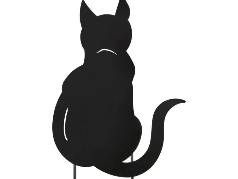 Dekorativer Gartenstecker mit Katzen-Silhouette aus Eisen