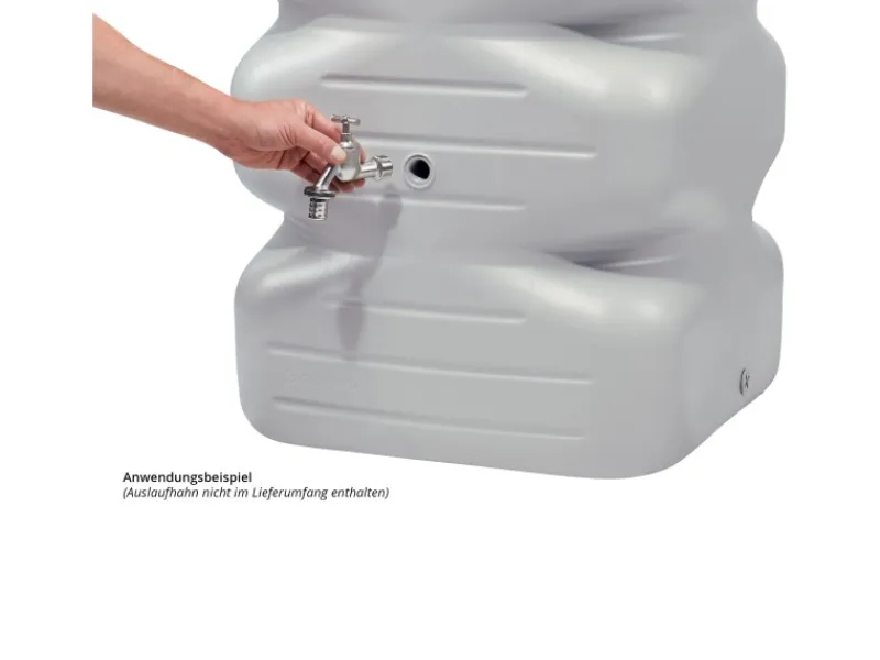 Dieser besonders robuste Regenspeicher aus der Garantia Basic Line bietet Ihnen mit seinen kompakten Abmessungen, ein ideales Fassungsvermögen von 340 Litern und ist bei Bedarf jederzeit beliebig erweiterbar. Somit haben Sie die Möglichkeit kostenloses Regenwasser zu sammeln und Ihren Garten nachhaltig zu bewässern. Geeignet zur Aufstellung im Garten oder auf der Terrasse. Der Behälter verfügt über drei Gewindeanschlüsse 19 mm (3/4″) zur Wasserentnahme, z. B. für die Montage eines Auslaufhahns (Zubehör), eines Schlauchsets (Zubehör) oder zur Restentleerung vor der Frostperiode. Zusätzlich befindet sich auf der Oberseite der Regentonne eine Deckelöffnung mit einem Durchmesser von 18 Zentimetern.