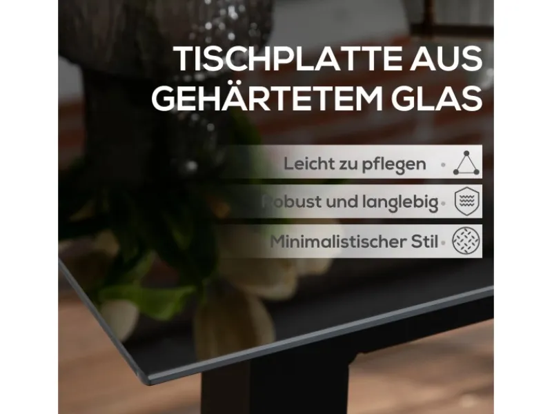 Tischplatte des Balkontischs aus gehärtetem Glas mit rahmenlosem Design sorgt für Stabilität