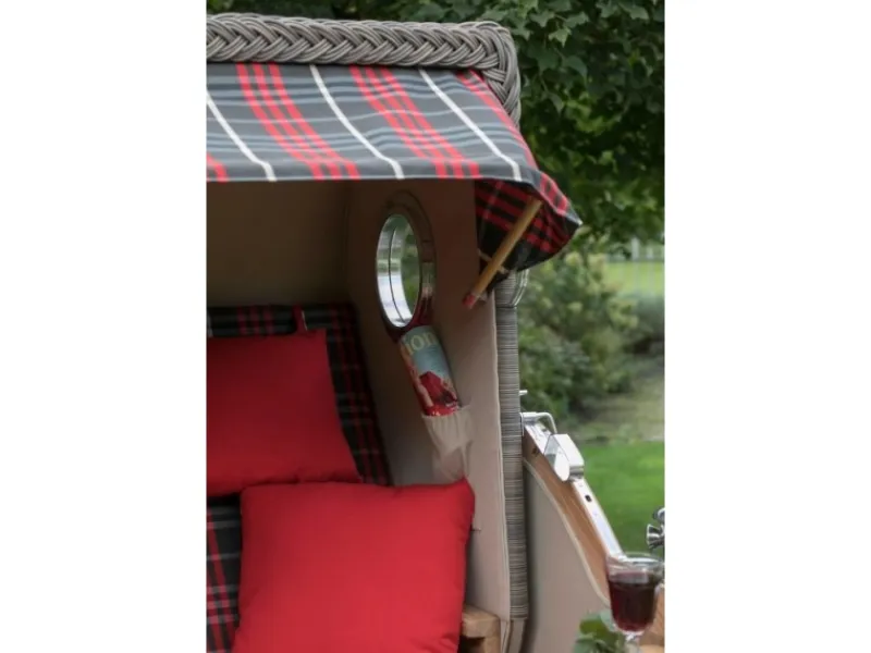 GarWoh Strandkörbe|Strandkorb Westerland Teak Bullauge PE Grey Dessin 506