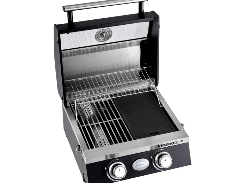 Der Rösle Gasgrill BBQ-Portable Videro G2-P ist mit 2 Haupt-Brennern aus Edelstahl (je 2,2 kW) ausgestattet. Der doppelwandige Deckel mit Glaseinsatz gewährleistet auch bei geschlossenem Deckel Einblicke in den Garraum. Die Brennkammer aus Edelstahl ermöglicht leichte Reinigung und garantiert lange Haltbarkeit. Durch die praktischen Deckelverschlüsse ist einfaches und sicheres Transportieren des Grills möglich.
