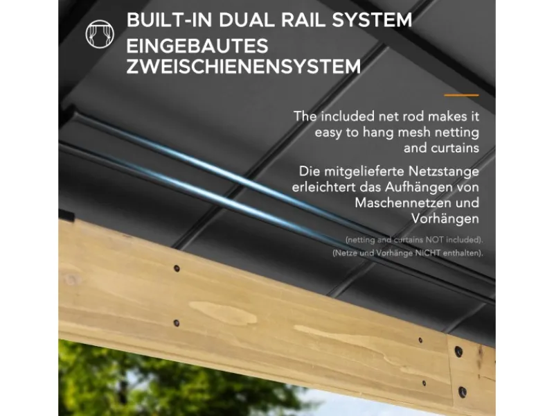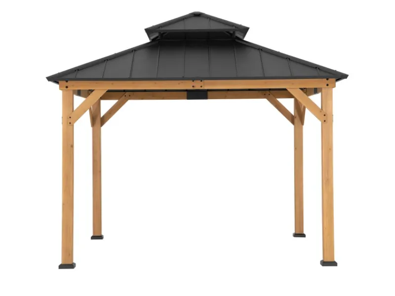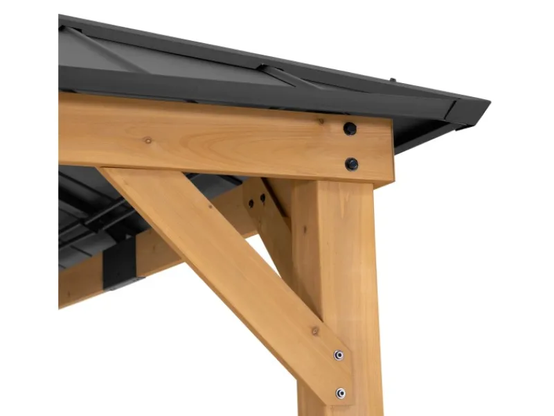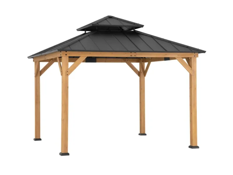 Der Pavillon verfügt über einen robusten Rahmen aus Zedernholz und ein pulverbeschichtetes Stahldach, das den Test der Zeit bestehen wird. Mit seinem zweistufigen Dach sorgt es für die richtige Luftzirkulation und schützt gleichzeitig vor gelegentlich schlechtem Wetter.