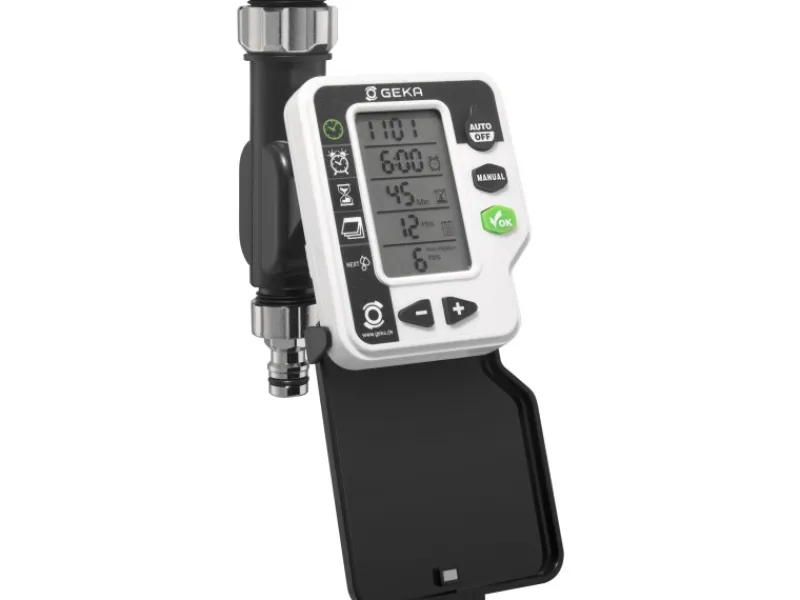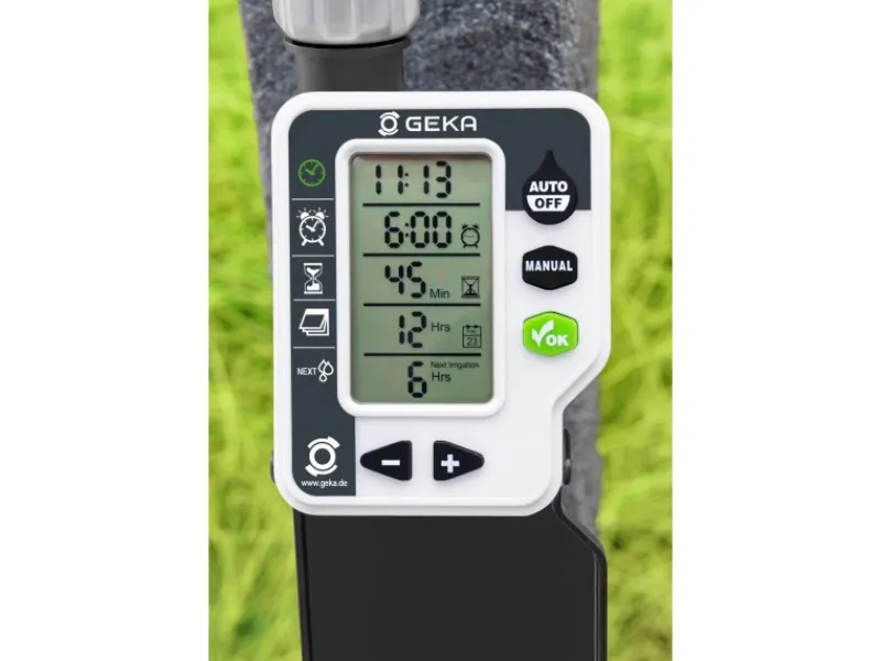 Die Geka Bewässerungssteuerungen werden mit dem Hahn verbunden, sind einfach zu bedienen und leicht zu installieren. Sie sind ideal für den Einsatz mit Regnern, Tropfbewässerrungs- und Sprinklersystemen.