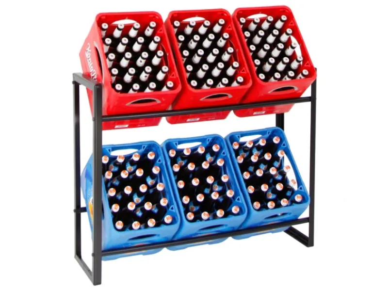 Getränkekistenregal aus Metall mit 2 Ebenen, 100 kg Traglast pro Ebene & Platz für 6 Getränkekisten