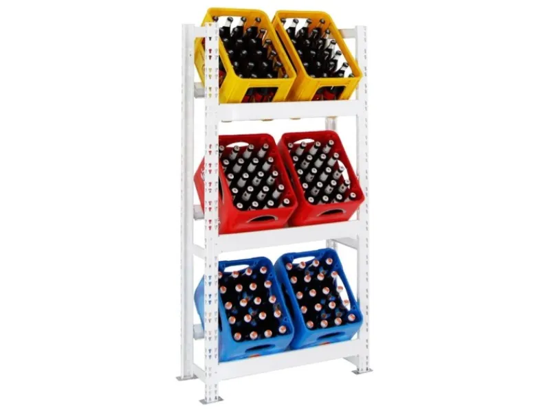 Getränkekistenregal mit 3 Ebenen einer Traglast pro Ebene von 100 kg und Platz für 6 Getränkekisten