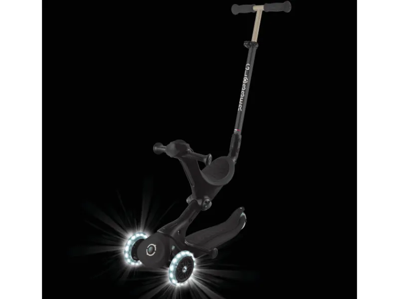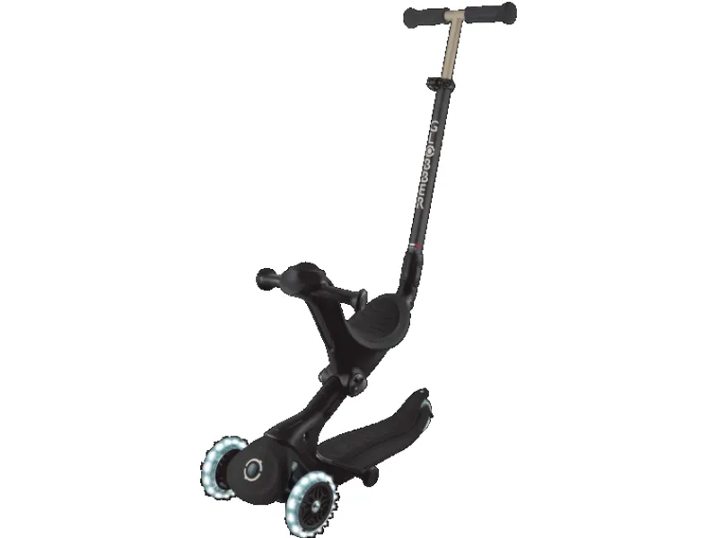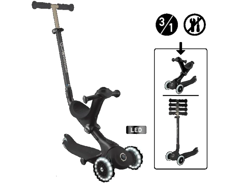 – Einfache, werkzeuglose Umbaumöglichkeit zu Dreirad mit Schubstange, Laufrad und Scooter