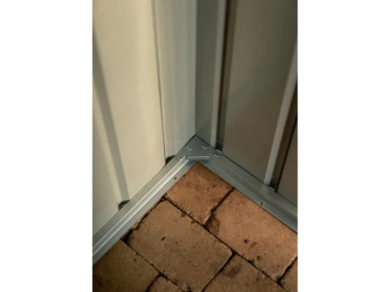 Das Holz-Gartenhaus verfügt über eine robuste Konstruktion, mit einer Wandstärke von 0,3 mm. Das Dach des Gerätehauses ist als Pultdach konstruiert. Die Firsthöhe beträgt 203 cm, wodurch eine angenehme Kopffreiheit im Innenraum gegeben ist. Die Oberfläche des Metall-Gerätehauses ist feuerverzinkt, um es optimal vor Witterungseinflüssen zu schützen und Korrosion vorzubeugen.