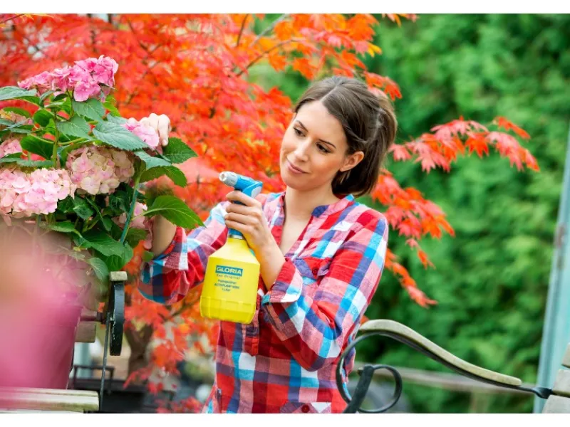 Die in der Düse integrierte LED Leuchte leuchtet bei Betrieb und zeigt durch mehrmaliges Blinken einen niedrigen Batterie-/Akku-Stand an. Handelsübliche Batterien oder Akkus versorgen das Sprühgerät mit ausreichend Leistung für zehn bis zwölf Gerätefüllungen.