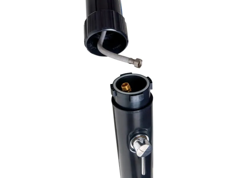 Die Gre PVC-Solardusche aus PVC ist gebogen und in Schwarz gehalten. Sie verfügt über eine Einhebelarmatur für kaltes und heißes Wasser mit einstellbarem Sprüher. Der regulierbare Breitstrahler sorgt für ein angenehmes Duscherlebnis. Die Dusche hat ein Fassungsvermögen von 20 l. Die Dusche besteht für den leichteren Transport aus 2 Teilen, welche einfach zusammengebaut werden können. Sie eignet sich beispielsweise als Gartendusche zur Aufstellung am Pool.