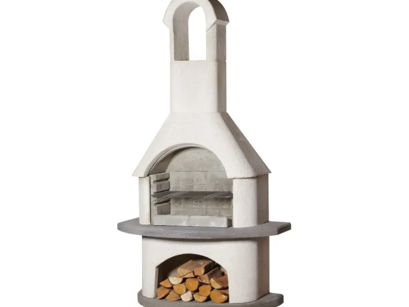 Gartengrillkamin für den Außenbereich mit Ablagefläche für Holz
