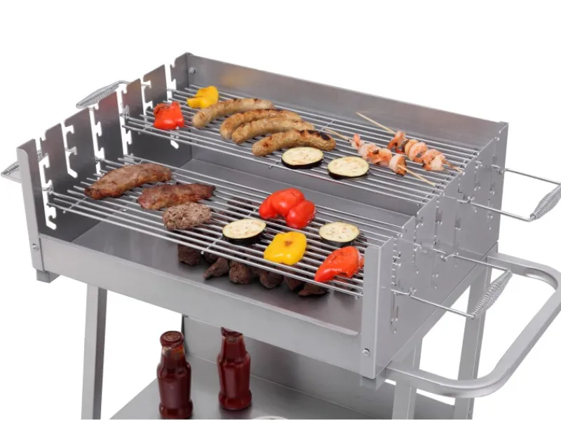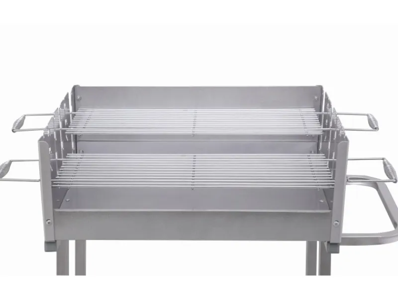 Zwei verchromte höhenverstellbare Grillroste mit Griffen