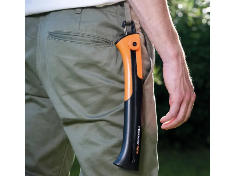 Dank des integrierten Gürtelclips kannst du die Baumsäge einfach und immer bei sich tragen. So hast du die Säge immer griffbereit, wenn du diese benötigst. Bei Verwendung der Säge fährt der Clip in den Griff ein, sodass er bei den Sägearbeiten nicht stört. Der Griff mit rutschfester SoftGrip-Oberfläche liegt gut in der Hand und verleiht einen staken Halt. Ein Fingerschutz am vorderen Bereich des Griffs, schützt vor Abrutschen und unbeabsichtigten Kontakt mit dem Sägeblatt, was oft zu Verletzungen führen würde.