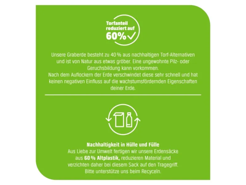 Die besonders dunkle, torfreduzierte Spezialmischung ist bereits gebrauchsfertig gedüngt. Ausgewogen dosierte Inhaltsstoffe bieten ideale Voraussetzungen für ein gesundes Pflanzenwachstum. Der in der Pflanzenerde enthaltene Schwarztorf verbessert die Wasserhaltekraft des Bodens und unterstützen in den Sommermonaten die Wasseraufnahme Ihrer Pflanzen.