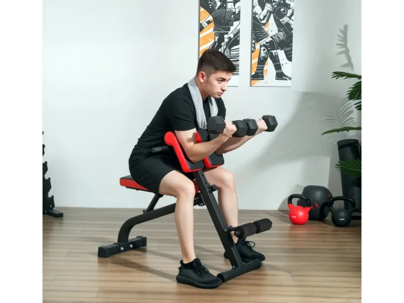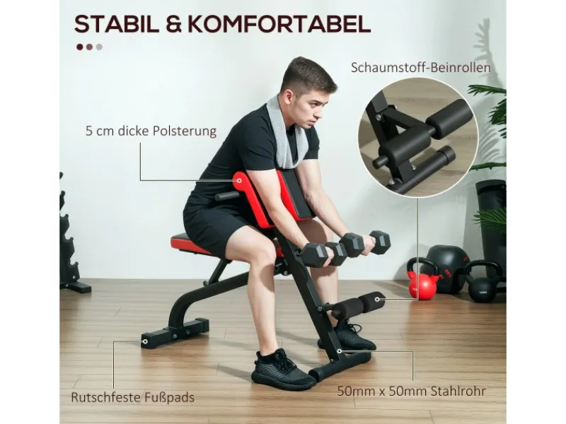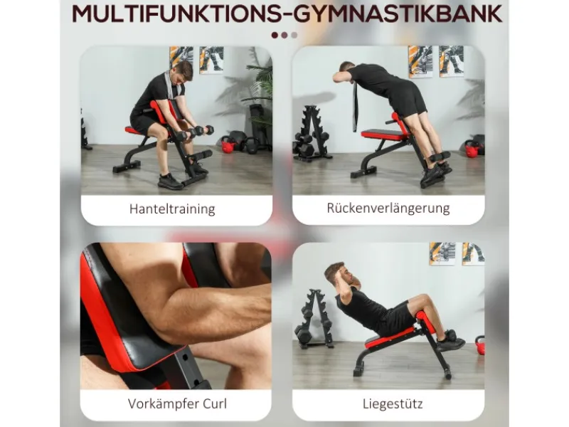 ● Vielseitige Fitnessbank, die als Hantelbank, Curl-Station, Rückenstrecker oder Liegestützstation dient