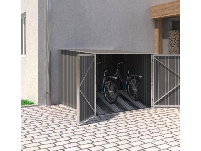 Wetterfeste Bike-Box aus feuerverzinktem und lackiertem Stahl mit Pultdach