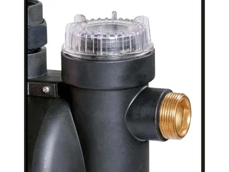 Der Hauswasserautomat verfügt über einen Vorfilter mit integriertem Rückschlagventil, der die Wasserqualität verbessert und somit eine Verunreinigung der Pumpe verhindert. Außerdem verfügt das Gerät über einen integrierten, elektronischen Trockenlaufschutz, der es vor dem Überhitzen bei einem Abriss der zu pumpenden Wassersäule aktiv schützt. Die Wasserpumpe ist mit einer großen Wassereinfüllöffnung für die einfache Befüllung ausgestattet, die Entleerung des Restwassers erfolgt bequem über eine Wasserablassschraube an der Unterseite. Der Metall-Sauganschluss und der Druckanschluss aus Kunststoff, sowie das robuste Kunststoff-Pumpengehäuse sind besonders hochwertig gefertigt für eine lange Lebensdauer.