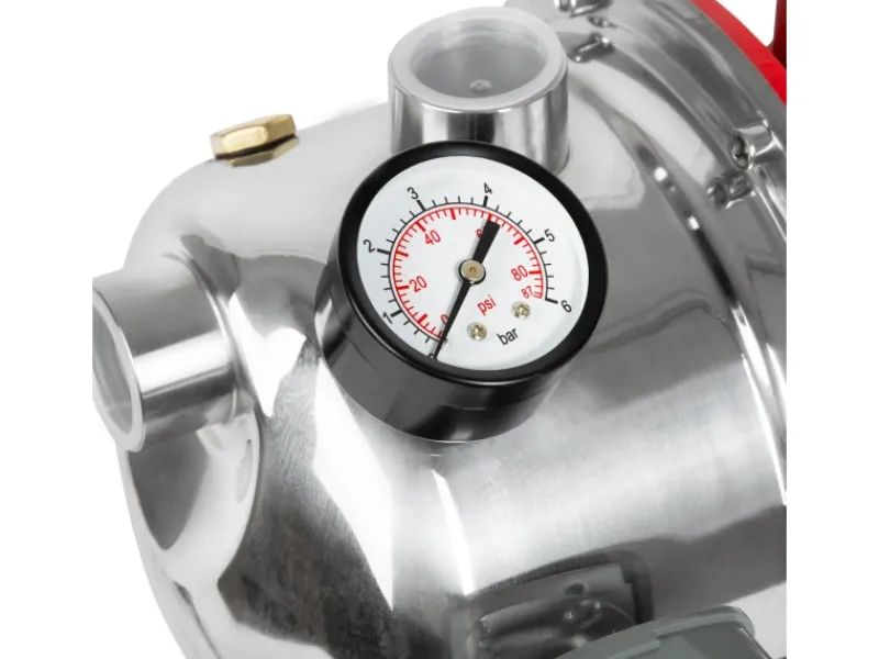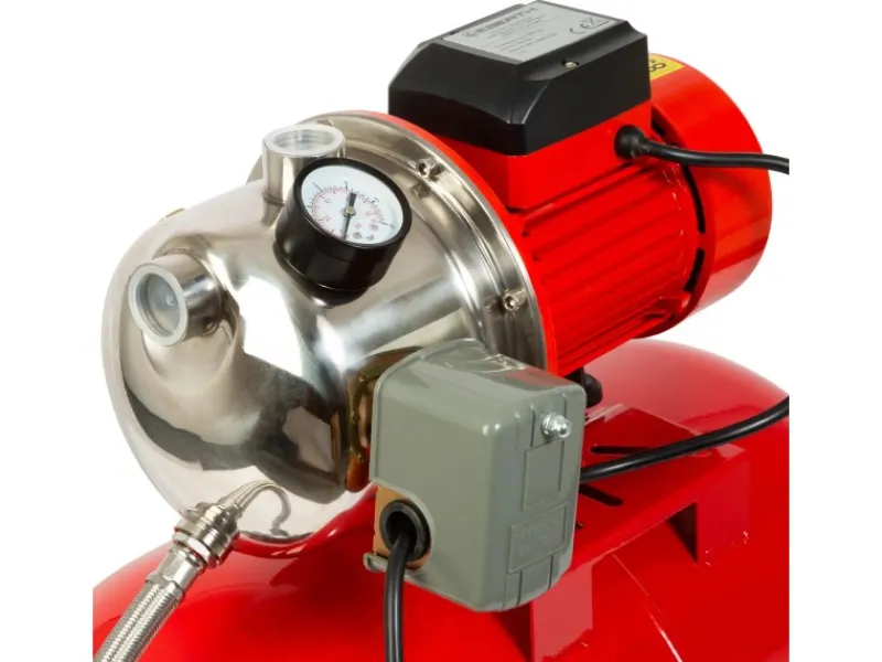 Edelstahl-Pumpengehäuse und lackierter Gusseisen-Druckkessel für Rostschutz und Langlebigkeit.