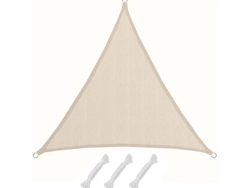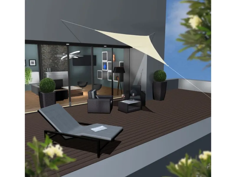 Sonnensegel mit eingenähtem Gurt, D-Ringen aus Edelstahl und 4 robusten PE Seilen.