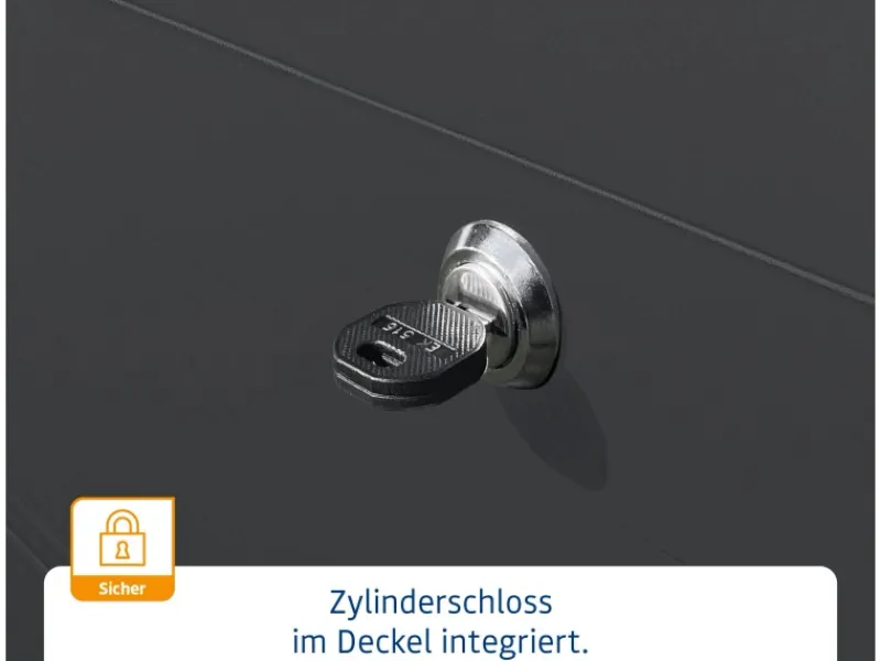 Die EcoStar Gartenbox Elegant in Anthrazit Grau bietet hochwertigen Stauraum für Sitzkissen, Liegeauflagen, Spielzeug und Gartengeräte. Sie ist robust verarbeitet und lässt sich sicher verschließen, um den Inhalt zuverlässig zu schützen.
