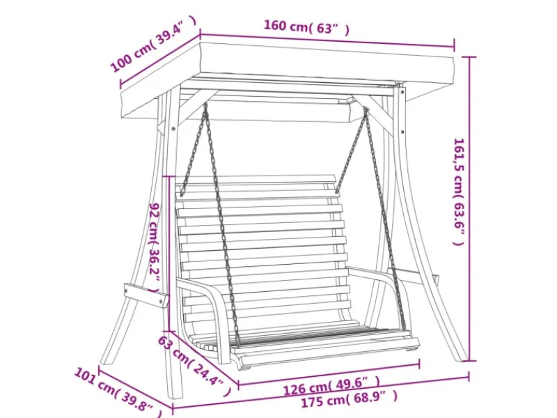 Abmessungen der Hollywoodschaukel: 126 x 63 x 92 cm (B x T x H)