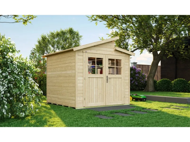 Das Gartenhaus überzeugt durch sein modernes Design und ist dabei in der Farbe Natur gehalten. Es eignet sich besonders zur Aufbewahrung von Gegenständen.