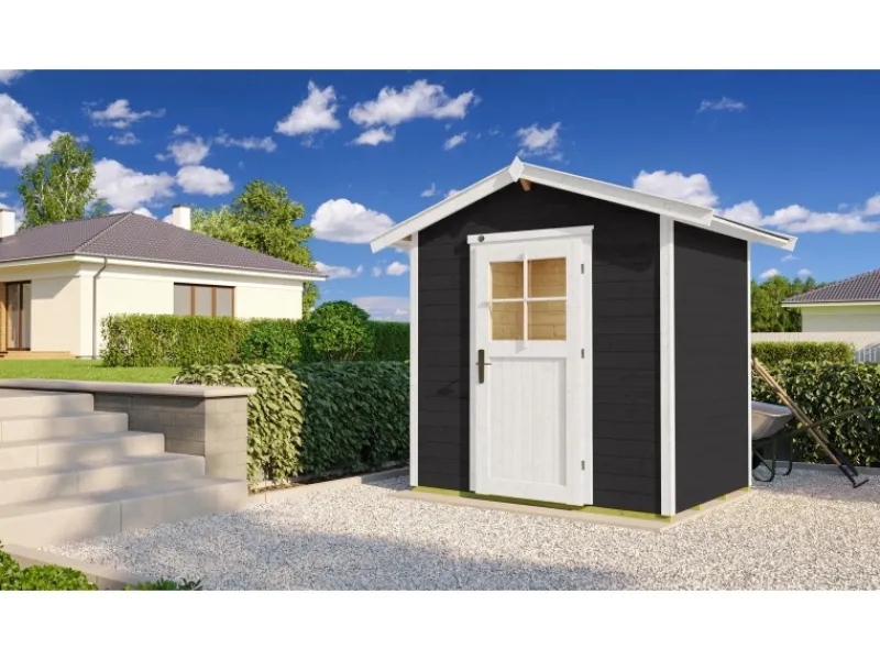 Das Holz-Gartenhaus überzeugt durch sein klassisches Design und ist dabei in der Farbe Anthrazit gehalten. Es eignet sich besonders zur Aufbewahrung von Gegenständen.