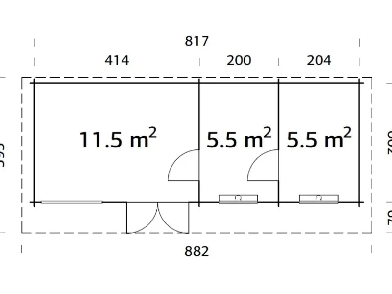 Sockelmaß Haus ohne Außenfläche B x T: 817 x 300 cm