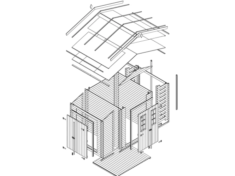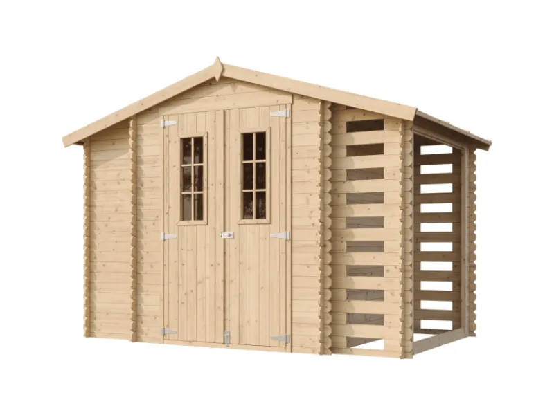Für Tageslicht sorgt ein integriertes Fenster (65 cm x 37 cm). Mit einer maximalen Höhe von 218 cm bietet es zudem genügend Kopffreiheit. Der imprägnierte Holzboden (19 mm stark, 6 cm hoch) ist im Lieferumfang enthalten.