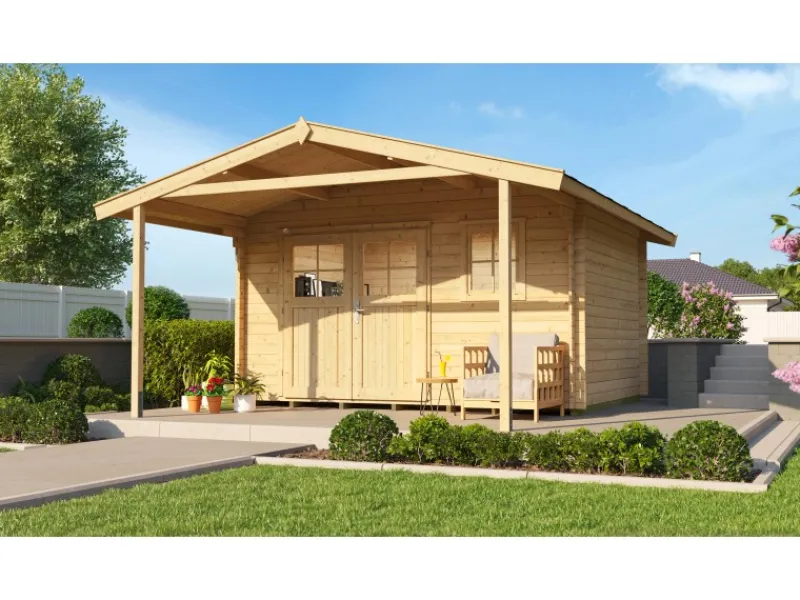 Holz-Gartenhaus mit praktischer überdachter Außenfläche